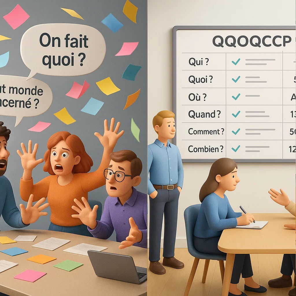 Le QQOQCCP est là pour ça : mettre les faits sur la table, pas sous le tapis. C’est l’outil qui transforme un flou organisationnel en état des lieux clair, avant de chercher la solution.